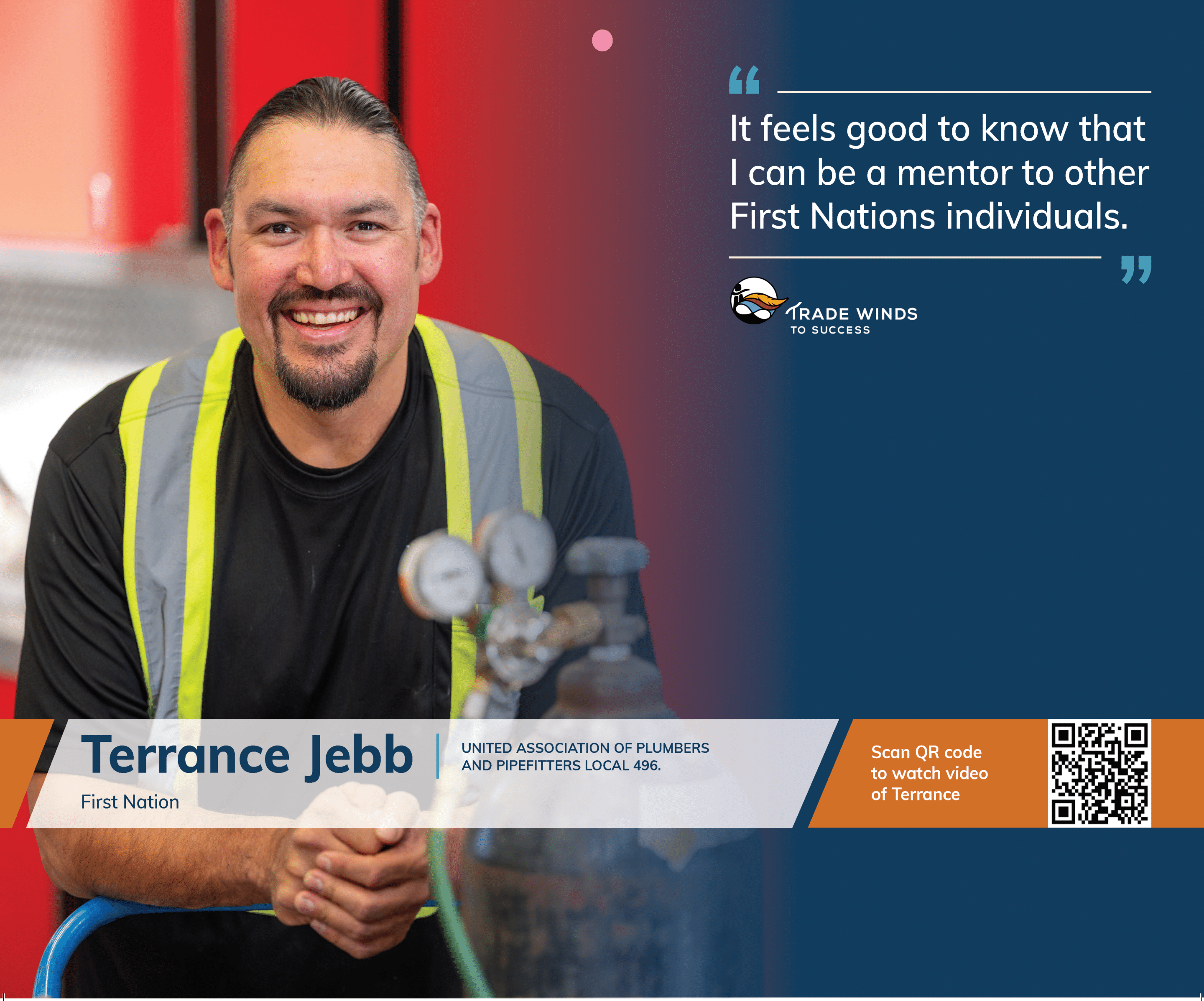 That turning point came when Terrance discovered Trade Winds to Success, an organization dedicated to helping Indigenous people enter the skilled trades. He enrolled in the program and successfully trained as a gas fitter and commercial plumber. Joining the UA Local 496 marked a significant shift in his life. Union work provided fair wages, benefits, overtime pay, pension security, and a sense of camaraderie and equality in the workplace.